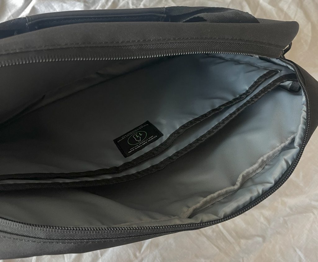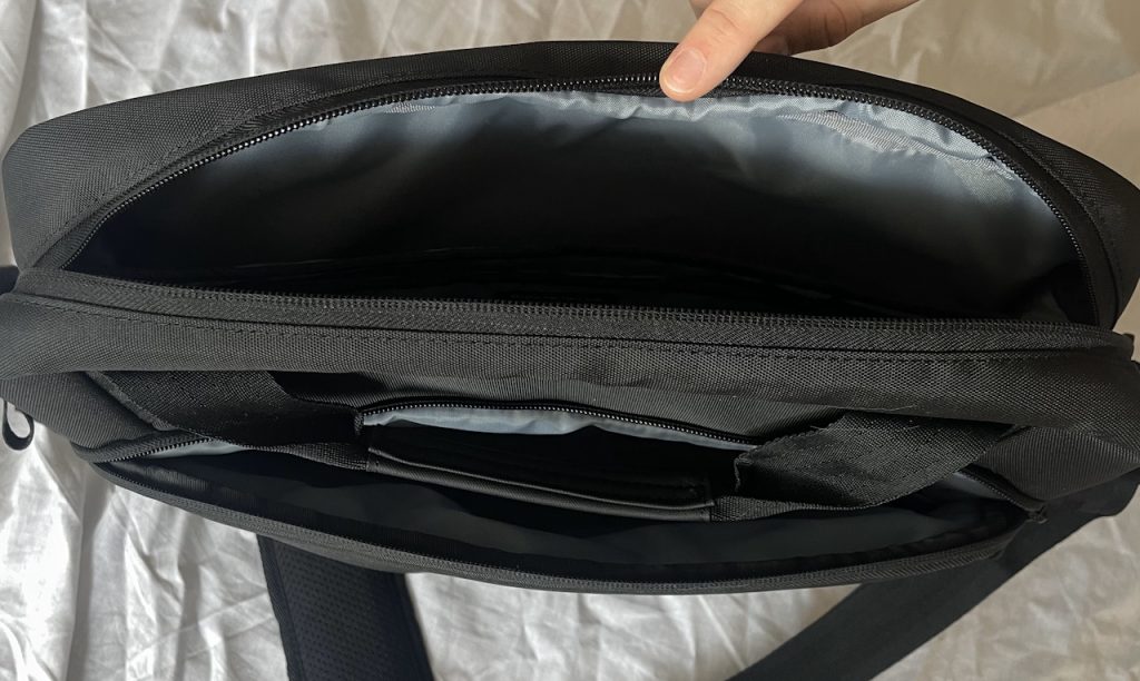 З не дуже мені зрозумілого та неприємного – пом’якшуючих накладок для запобігання пошкодженню вмісту могло б бути й більше. Дно та кути сумки майже не захищені. Вологозахист номінально є, але блискавка що закриває сумку зверху і тому при сильних опадах може протікати. А може й ні, але тестувати чомусь не хочеться.
